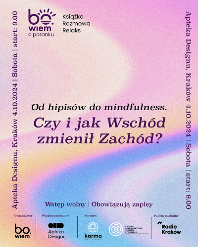 10:30–11:30 – rozmowa: „Od hipisów do mindfulness: czy i jak Wschód zmienił Zachód?” inspirowana książką „Nirwana Express”. Prowadzenie: dr hab. Agata Świerzowska, prof. UJ, rozmówcy: Katarzyna Pilorz, Przemysław Skrzyński
