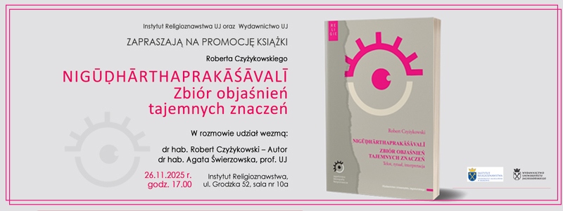 Zaproszenie na promocję książki Roberta Czyżykowskiego "NIGŪḌHĀRTHAPRAKĀŚĀVALĪ. Zbiór objaśnień tajemnych znaczeń"